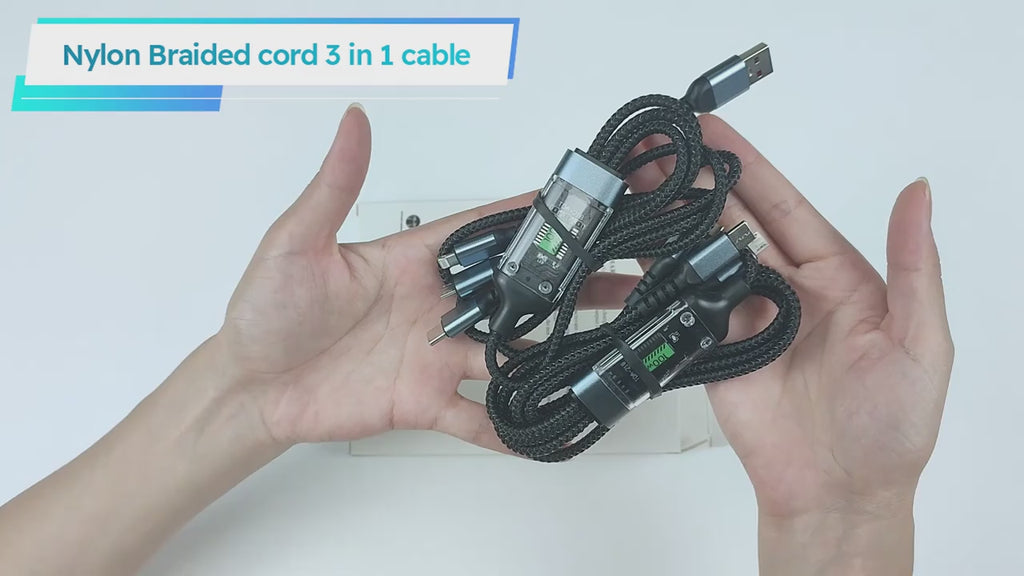 3 in 1 Multiple Interfaces 100W USB Charging Cable with Intelligent Support and Visual Power For Home and Outdoor Use